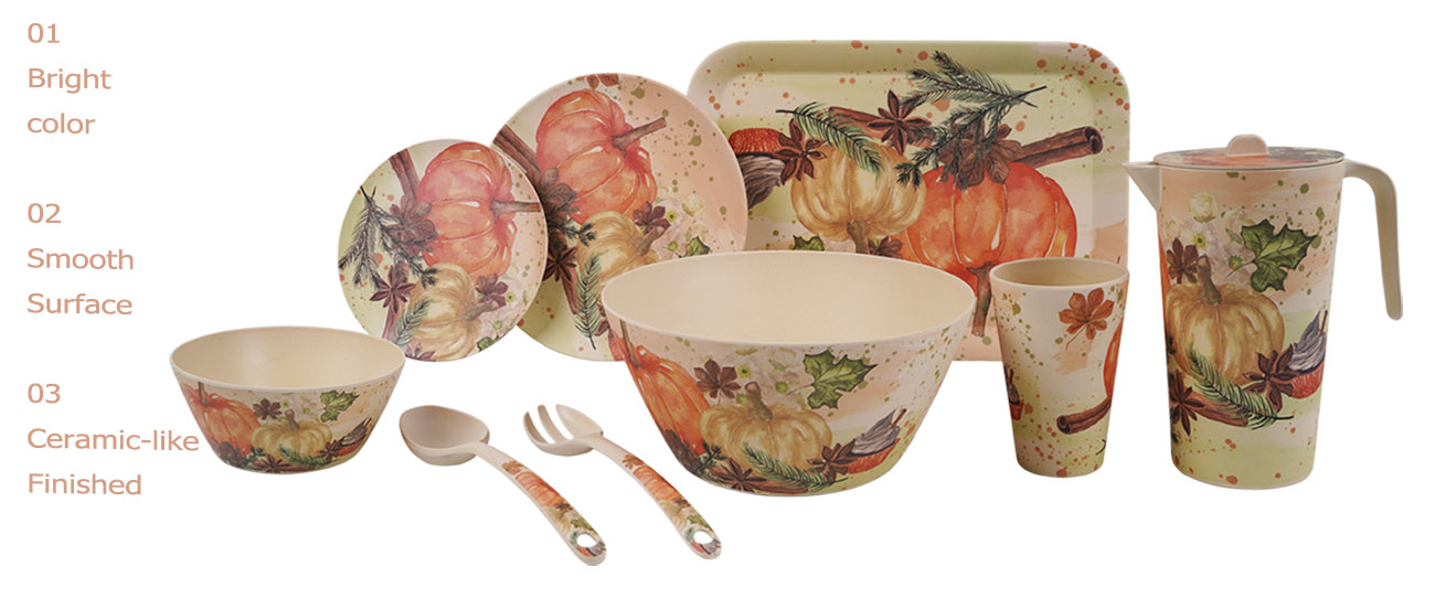Our company has a strong advantage in designing,developing,processing and manufacturing of all kinds of tablewares, which specializes in lunch boxes, kids dinner sets, cups, plates,bowls and others bamboo fiber products.