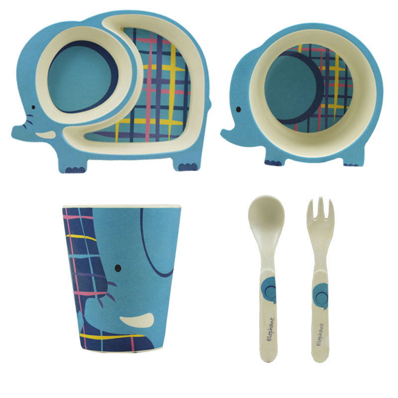 Biodegradable eco friendly animal shape and picture bamboo fibre kids set baby dinner set