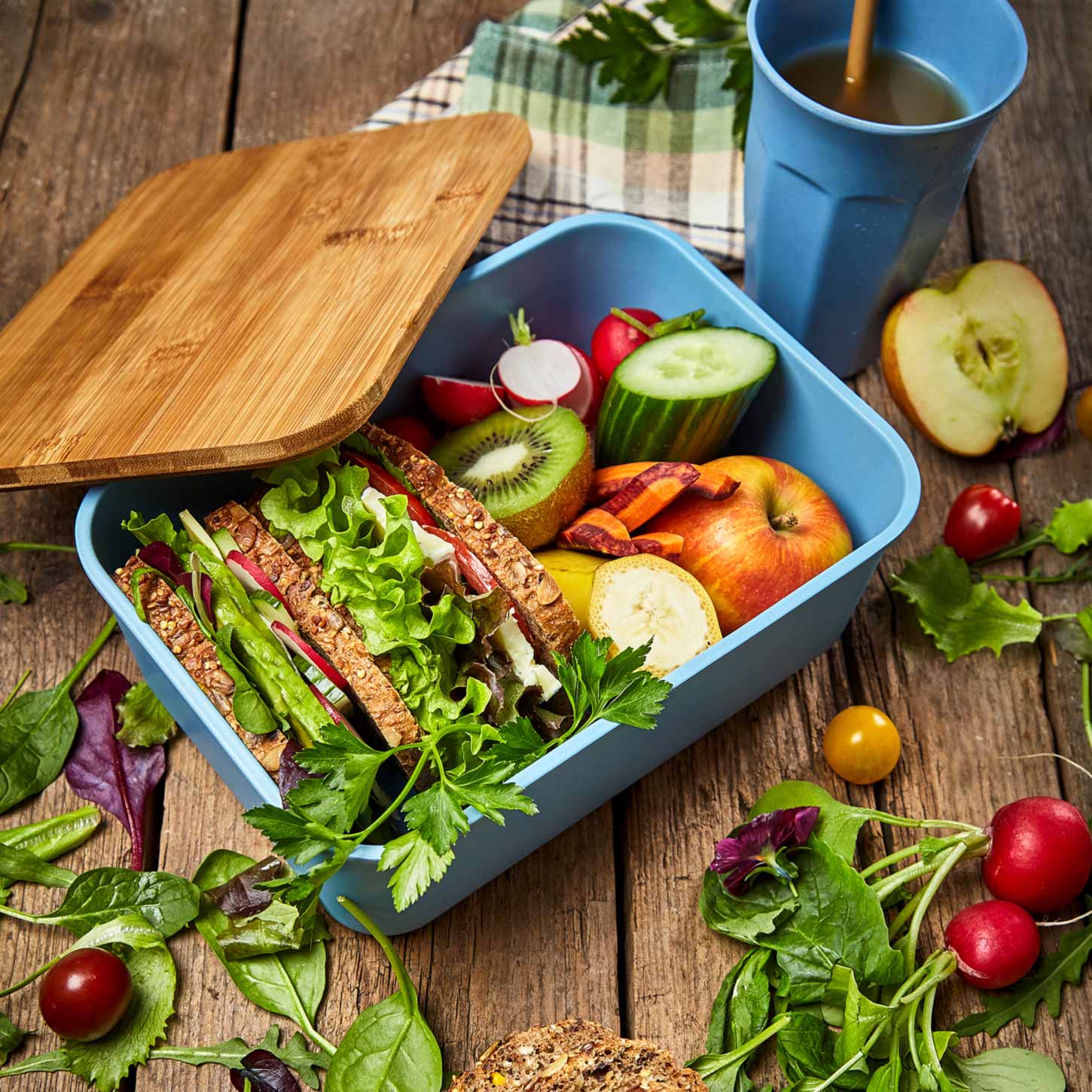 Bento Box bamboo fiber Wooden Lid Lunch Box Simple Environmental Friendly Box Square Bamboo Lid