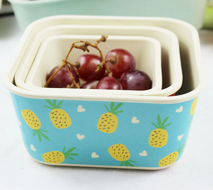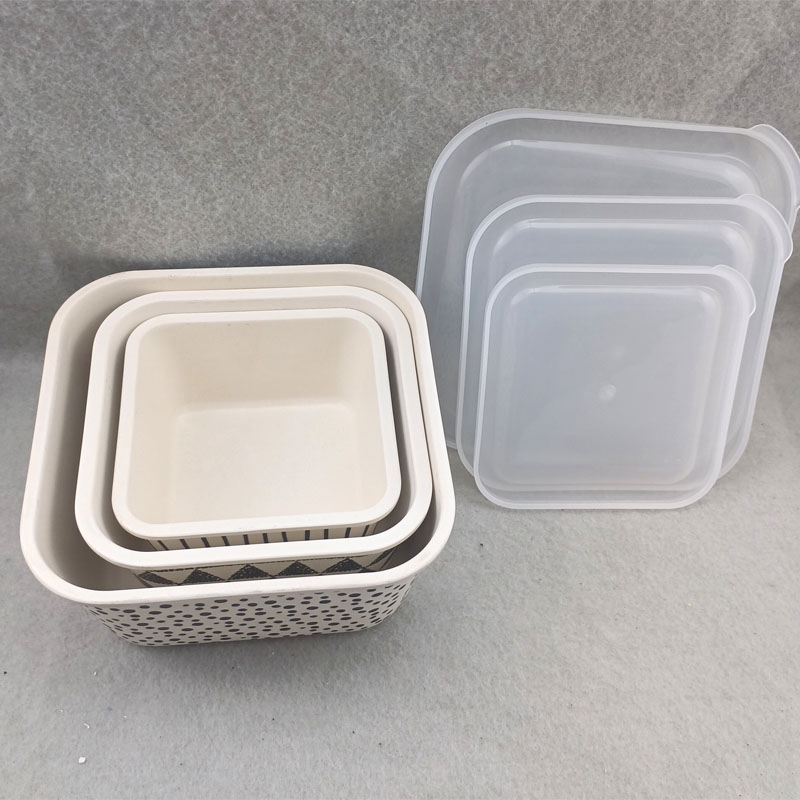Eco friendly biodegradable bamboo fiber material food container with pe lid