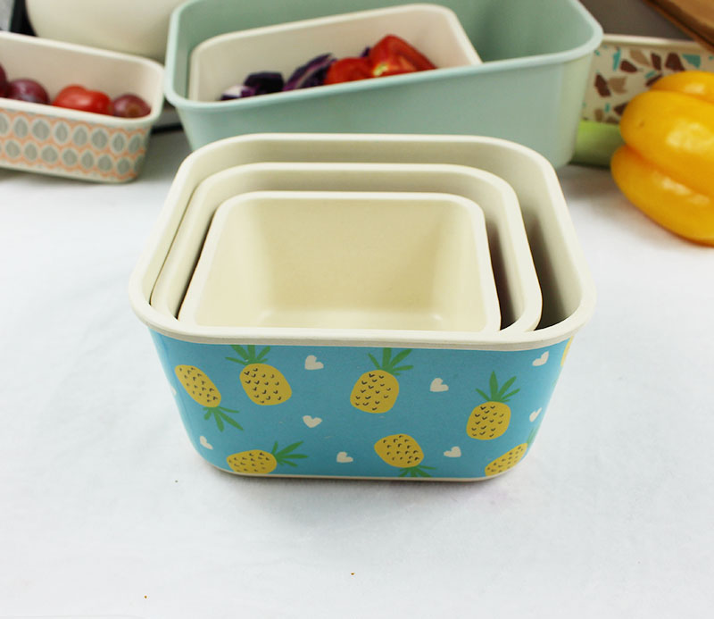 Different size large middle small square shape bamboo fiber lunch box with PP lid