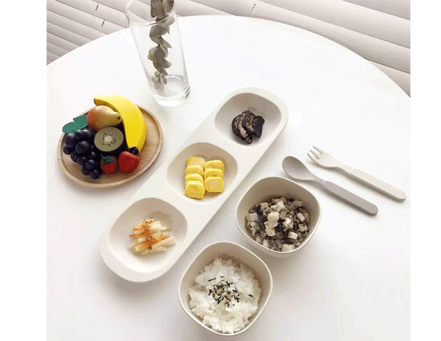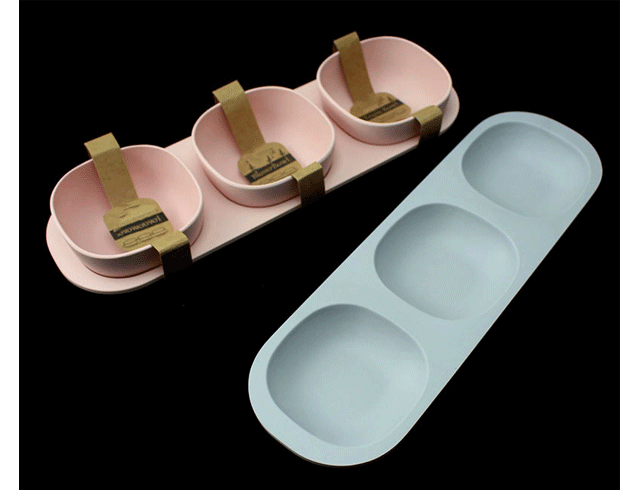 Eco friendly 3 bowl with tray bamboo fiber plastic snack plate and bowl