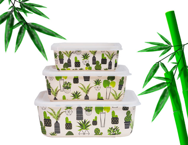 Eco friendly biodegradable bamboo fiber material food container with pe lid
