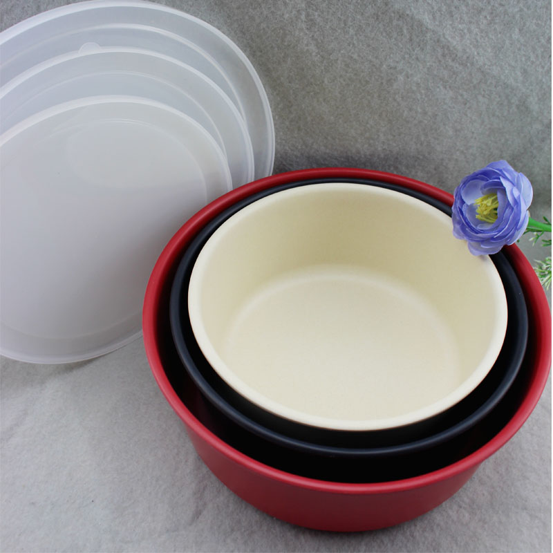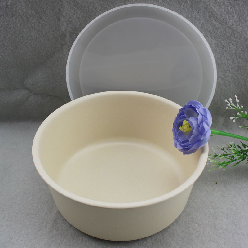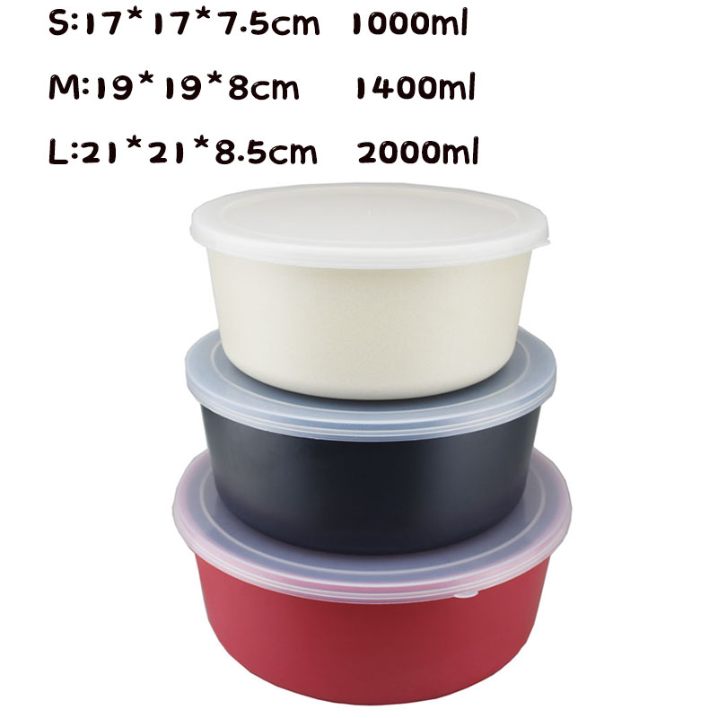 Eco friendly round bamboo fiber container lunch box with plastic lid