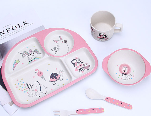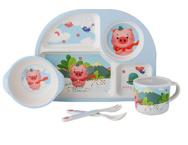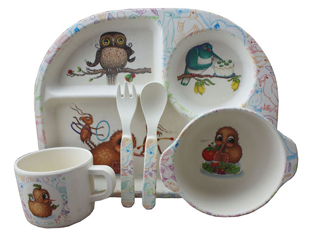 Hot selling bamboo fiber kids tableware sets bowl and cup sets