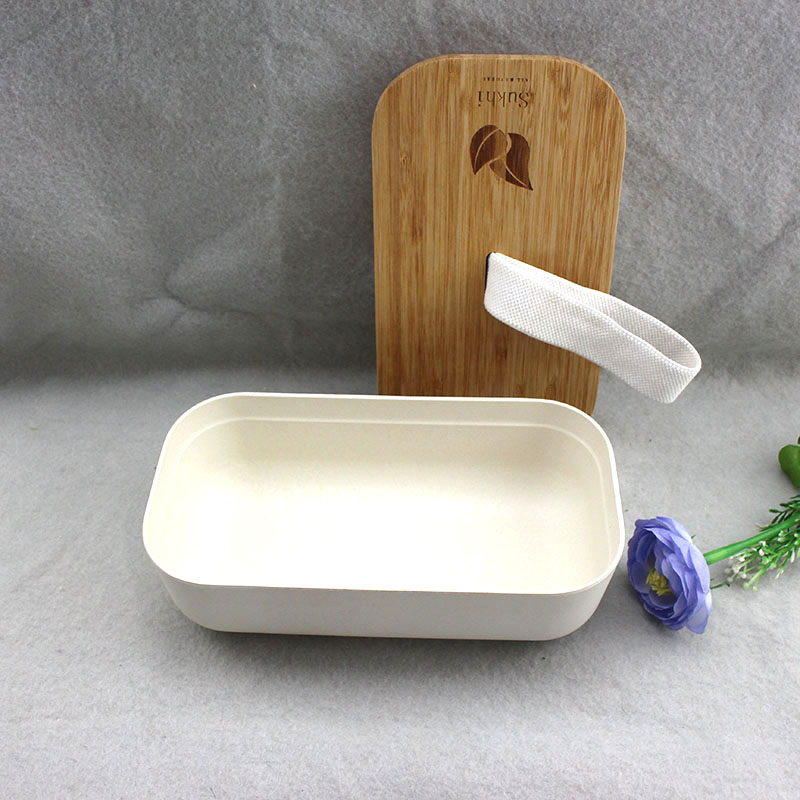 Eco friendly biodegradable bamboo fiber material food container with pe lid