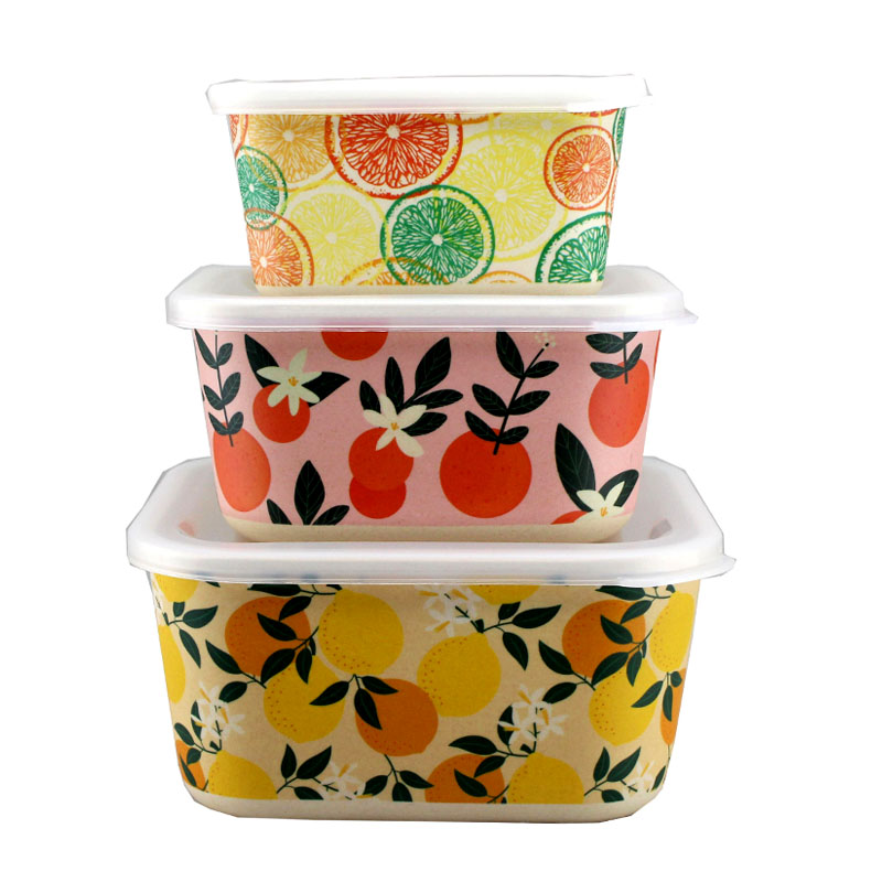 Eco friendly biodegradable bamboo fiber material food container with pe lid